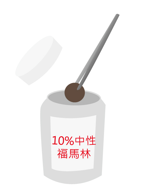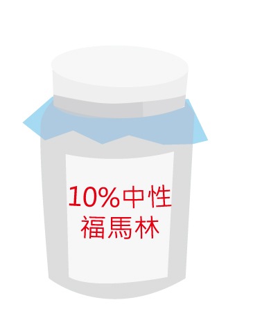 檢體採樣後,應立即放在廣告塑膠標本瓶中,以 10%中性福馬林固定。