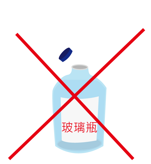 請勿使用窄口玻璃瓶,因檢體固定後會變硬,可能造成檢體無法取出,且在運輸途中有破裂溢出風險。