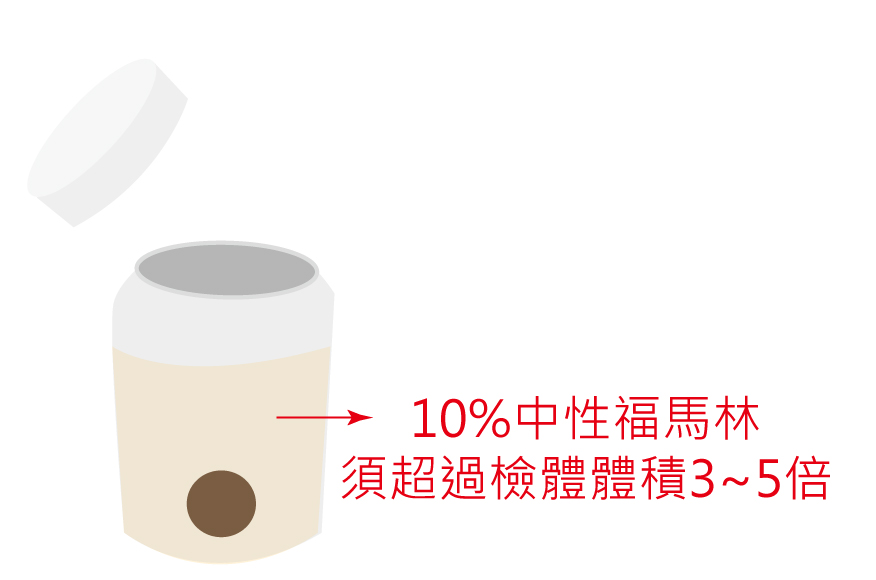 固定液的量應為檢體體積的3~5倍以上,液面需完全覆蓋檢體。
