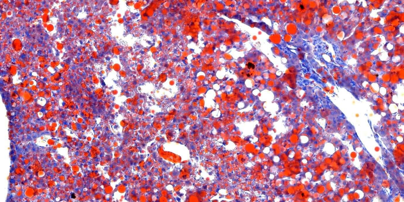 有相關實驗經驗的朋友一定都知道,首先肝臟冷凍切片要取得良好的形態並不容易,再來就是油紅染色染完後常常會整片糊糊的,或是根本染不上色。立众獨家代理的Biotna – Tools of molecular pathology油紅染色套組(#TASS06),配合立众病理實驗室經驗豐富的切片技術,就能取得最佳的組織病理切片!!