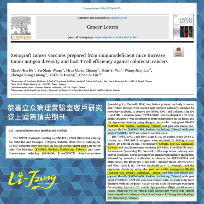 恭喜立众病理實驗室客戶的研究再一次登上頂尖國際期刊 !!