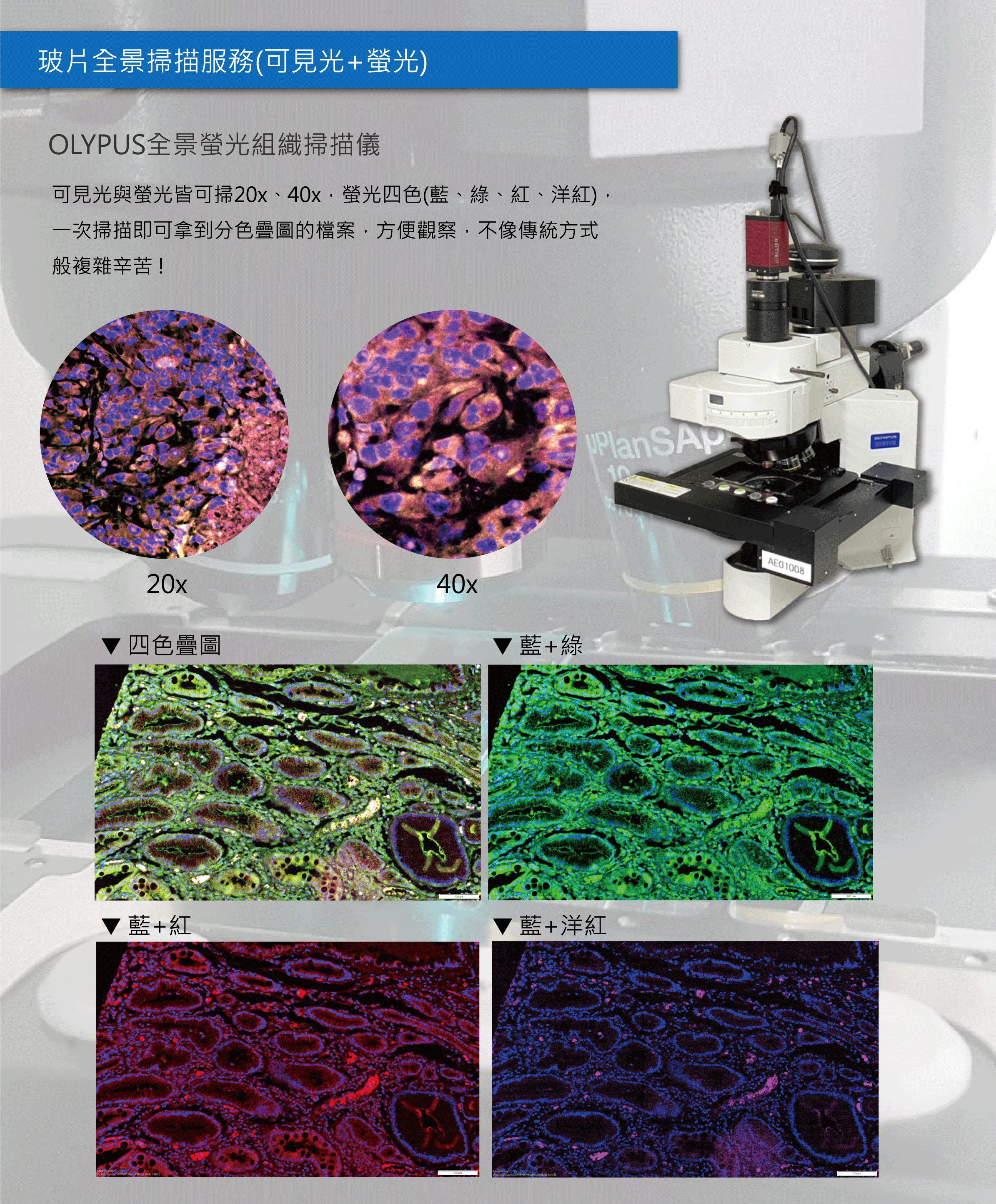 玻片全景掃片服務分為:可見光與螢光。